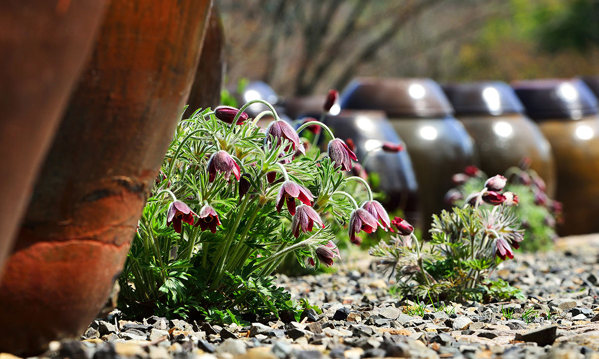 반질반질 윤기 흐르는 장독대 아래에 할미꽃이 곱게 피었다. 어린 날 집 마당 한쪽에 있는 조촐한 장독대가 이와 같았다. 햇살 가득한 오후, 장독들은 묵묵히 서서 간장 된장의 깊은 꿈을 품고 있었다. 할머니는 대대로 물림 한 장독들을 손주 머리 쓰다듬듯이 정성스럽게 닦았다. 그리곤 조심스럽게 뚜껑을 열고 이야기를 나누시곤 했다. 장독들이 긴 세월 익혀 온 씨간장의 향기를 살폈고 된장의 맛을 보셨다. 나는 그 곁에서 바람에 흔들리는 할미꽃을 바라보곤 했었다. 수많은 세월이 흘렀어도 시골집 장독대에 스미는 봄날의 나른한 햇살과 할머니의 손길은 잊을 수 없다. 문득 할머니가 그리운 봄날이다.